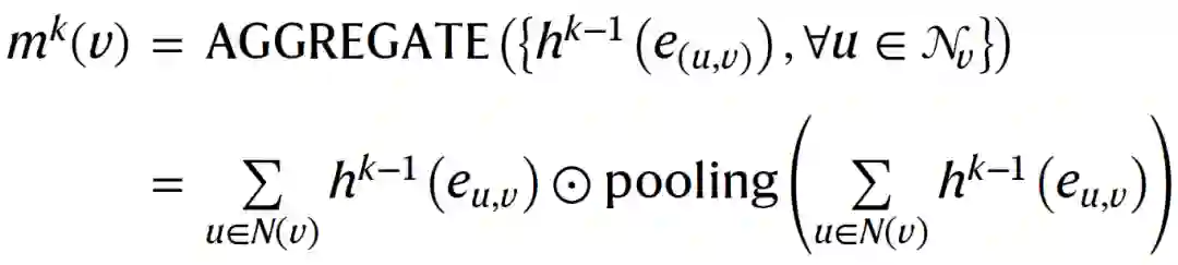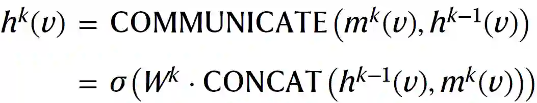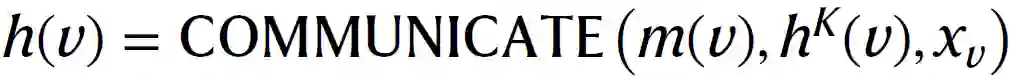 其中表示消息传递的当前深度,是元素乘法运算符。这里作者应用最大池化来突出显示具有最高信息强度的边,因为节点的隐藏状态主要基于来自传入边的最强消息。然后,将节点当前的隐藏状态与消息向量连接,并通过一个通信函数 (communicative function)来更新节点的隐藏状态:
