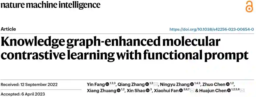 今天给大家分享一篇浙江大学陈华钧教授,范骁辉教授,张强研究员课题组合作发表在Nature Machine Intelligence上的论文:“Knowledge graph-enhanced molecular contrastive learning with functional prompt”。作者提出了一种通过结合化学领域知识来增强分子性质预测任务的新方法KANO,以面向元素的知识图谱为先验,设计了在基于对比的预训练中的元素引导图增强,在微调中学习功能提示,以唤起预训练模型获得的下游任务相关知识。大量实验表明KANO的有效性,并为其预测提供了化学合理的解释。