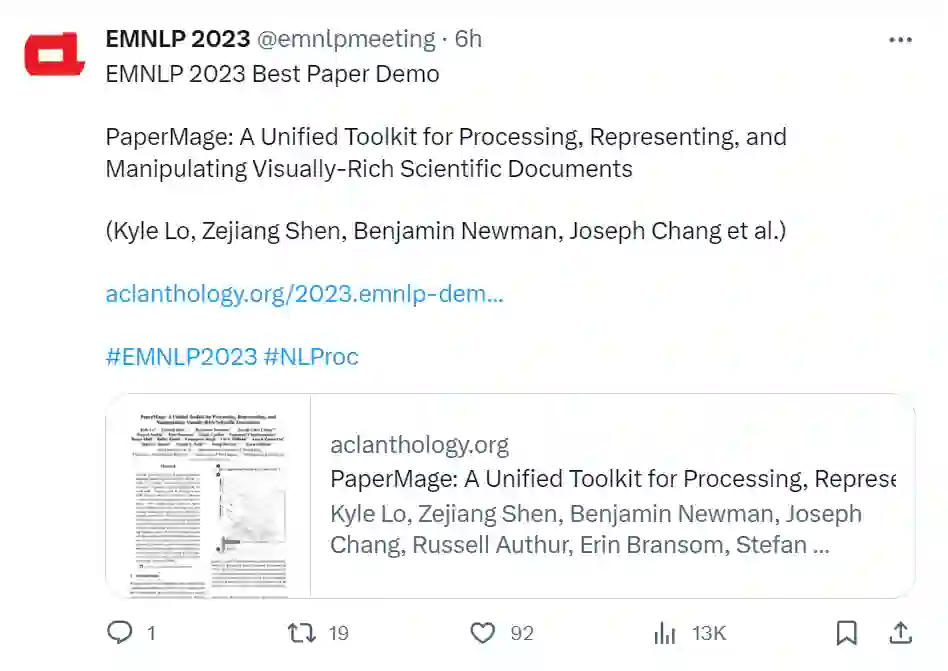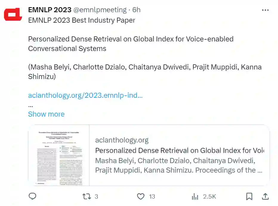 EMNLP 是自然语言处理领域的顶级会议,EMNLP 2023 将于 12 月 6 日 - 10 日在新加坡举行。大会官方公布了今年的论文获奖情况,包括最佳长论文(1 篇)、最佳短论文(1 篇)等。 https://2023.emnlp.org/