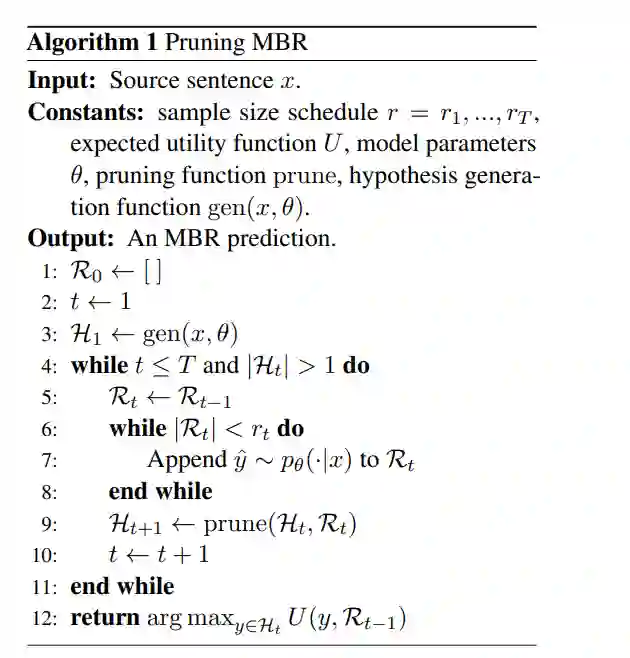 论文摘要:最小贝叶斯风险(MBR)解码输出在某个效用函数上对模型分布具有最高预期效用的假设。已经证明,在条件语言生成问题中,尤其是在神经机器翻译中,MBR在人类和自动评估中都能提高比束搜索更高的准确性。然而,标准的基于采样的MBR算法在计算上比束搜索显著更昂贵,需要大量样本以及对效用函数的二次数调用,限制了其应用性。我们描述了一种MBR算法,该算法逐渐增加用于估计效用的样本数量,同时根据通过自助采样获得的置信度估计剪除不太可能具有最高效用的假设。 我们的方法相比标准MBR需要更少的样本,并极大地减少了对效用函数的调用次数,同时在准确性方面在统计上无可区分。我们在三种语言对上的实验中展示了我们方法的有效性,使用chrF++和COMET作为效用/评估指标。