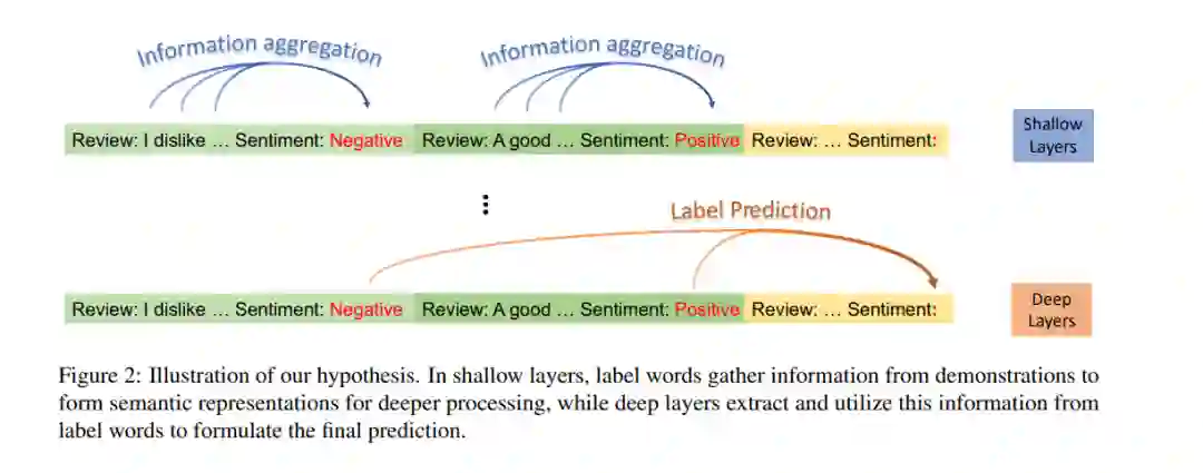 在上下文学习(ICL)作为大型语言模型(LLMs)的一种有前景的能力出现时,它通过提供示例演示来执行多种任务。然而,LLMs如何从提供的上下文中学习的底层机制仍未被充分探索。 在这篇论文中,我们通过信息流的视角来探讨ICL的工作机制。我们的发现揭示了演示示例中的标签词功能作为锚点:(1)在浅层计算层处理期间,语义信息聚集到标签词表征中;(2)标签词中的综合信息作为LLMs最终预测的参考。基于这些洞见,我们引入了一种锚点重新加权方法来提高ICL性能,一种演示压缩技术来加快推理,以及一种用于诊断GPT2-XL中ICL错误的分析框架。我们发现的应用再次验证了所揭示的ICL工作机制,并为未来的研究铺平了道路。