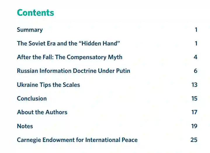 如果关于俄罗斯信息战的任何统一理论真的存在的话,其核心原则很可能是:在俄罗斯的战略思想中,政权安全与信息战历来是不可分割的。与其说克里姆林宫的所谓信息战是莫斯科外交政策的侵略性或扩张性表现,不如说它主要是通过国内和政权安全的棱镜来看待的--它既是一种反叛乱,也是一种远征战略,与其说是升级,不如说是投射。因此,分析家和决策者应避免反射性地将美国和西方作为俄罗斯信息战的主要对手,因为这样做有可能强化这些不安全因素,并夸大莫斯科在信息生态系统中的权力程度。