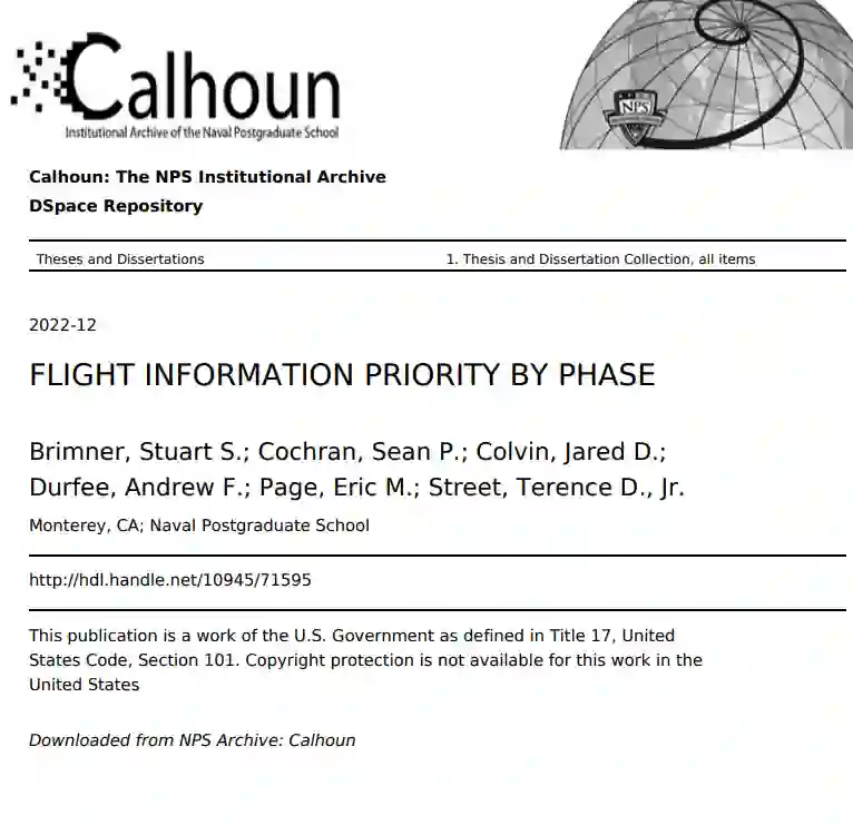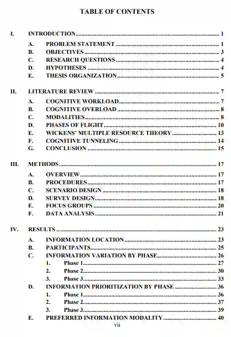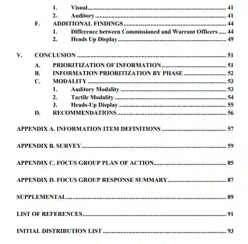 军用直升机飞行员在飞行过程中必须接收、分析、交流和应对大量的信息。飞行员不断地过滤信息,根据行动和飞行的具体情况,确定在当前任务中哪些信息是相关的。在融合信息的过程中,飞行员可能会经历认知过载,导致性能下降,并造成灾难性事件。本报告调查了飞行员在不同的飞行阶段是否需要不同的信息,飞行员在这些阶段需要哪些具体信息,以及飞行员希望如何接收不同类型的信息。向3600名美国陆军UH-60飞行员发送了一份调查(362人至少完成了调查的一部分;回复率约为10%),要求他们按飞行阶段对31项信息进行优先排序(非常重要、重要、有点重要)。调查结束后,UH-60飞行员在纽约的德伦堡进行了焦点小组讨论。研究小组发现,所需的信息因阶段而异,确定了每个阶段所需的具体信息,并确定飞行员喜欢大多数信息以视觉方式呈现。这项研究的结论可以为未来的驾驶舱设计提供参考,这些设计在减少飞行员认知负荷的同时,还能提高操作效率和安全性。