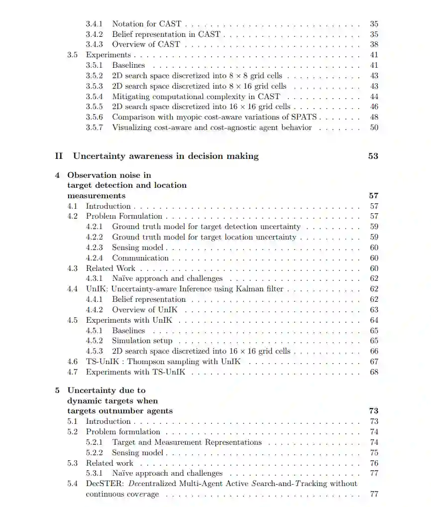 在本论文中,我们研究了多智能体自适应决策问题,并以**多智能体主动搜索(Multi-Agent Active Search, MAAS)**框架为基础,重点聚焦于多机器人团队在搜索与救援、野生动物巡逻或环境监测等应用场景中的实践问题。