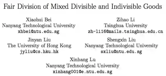 题目:Fair Division of Mixed Divisible and Indivisible Goods (混合可分割和不可分割商品的公平划分)