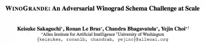 题目:WinoGrande: An Adversarial Winograd Schema Challenge at Scale(WinoGrande: 一种大规模的对抗式威诺格拉德模式挑战)