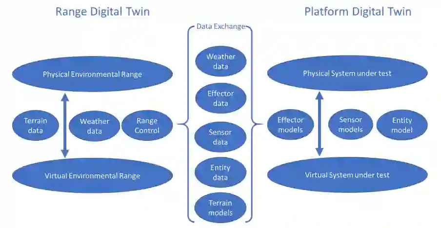 例如,导弹制造商和运载导弹的飞机制造商可能都有一个 "数字孪生"。导弹的性能可能会受到运载飞机的影响,反之亦然。在虚拟域中,在合成靶场上对模拟对手而不是在实战环境中对组合系统进行测试,将在开发过程中产生巨大的成本效益和其他操作效益。这就需要 "数字孪生 "系统相互通信,因此,在数字测试场活动中,可以对不同的系统进行测试,这将包括多个相互连接的 "数字孪生 "系统(靶场 "数字孪生 "和平台 "数字孪生"),这些 "数字孪生 "系统将相互交换数据。简化视图如图 4 所示。