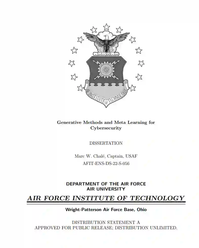 美国国防部(DoD)预计,未来的战争将主要在网络领域进行,对手包括战略竞争对手和非国家行为者。由于美国从未打过一场全面的网络战争,因此对 "道路规则 "并不十分了解[6]。敌人有可能通过已知和未知的威胁载体来攻击美国的利益。这些攻击的影响可能是非动能性的,即对信息系统的未获许可的访问或控制,或者是动能性的,意味着攻击会导致物理资产的破坏、基础设施的损坏或死亡。许多遗留的网络物理系统在建造时没有预见到网络漏洞[7]。随着战场物联网的发展,包括更多的这些系统,潜在的网络威胁暴露也在增加。想象一下,当士兵的可穿戴设备在战斗中因网络攻击而发生故障时,会出现怎样的混乱。至关重要的是,我们要在对手利用这些缺点之前,用新技术解决我们军队的网络安全问题。生成式机器学习和元学习是新兴领域,可能为网络安全研究中一些长期存在的障碍提供解决方案。