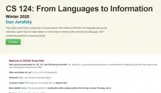 《从语言到信息》是一门(半)翻转的课程,有很多在线材料。大部分讲座都有录像,你可以在家里看。每周的测验和编程作业将自动上传和评分EdX提供讲座、测验和家庭作业。网络世界以语言和社交网络的形式存在着大量的非结构化信息。学习如何理解它,以及如何通过语言与人类互动,从回答问题到给出建议。从人类语言文本、语音、网页、社交网络中提取意义、信息和结构。介绍方法(字符串算法、编辑距离、语言建模、机器学习分类器、神经嵌入、倒排索引、协作过滤、PageRank)、应用(聊天机器人、情感分析、信息检索、问答、文本分类、社交网络、推荐系统),以及两者的伦理问题。