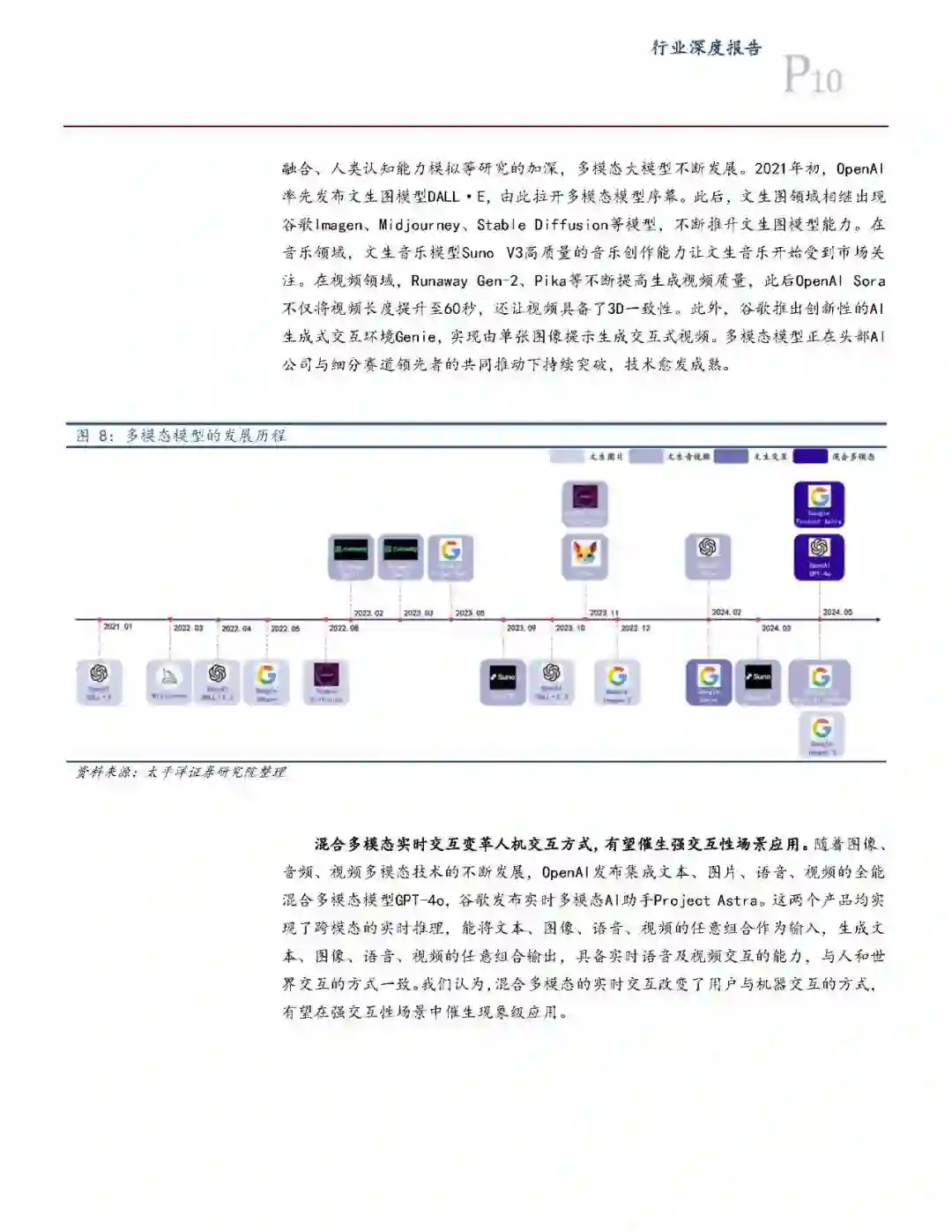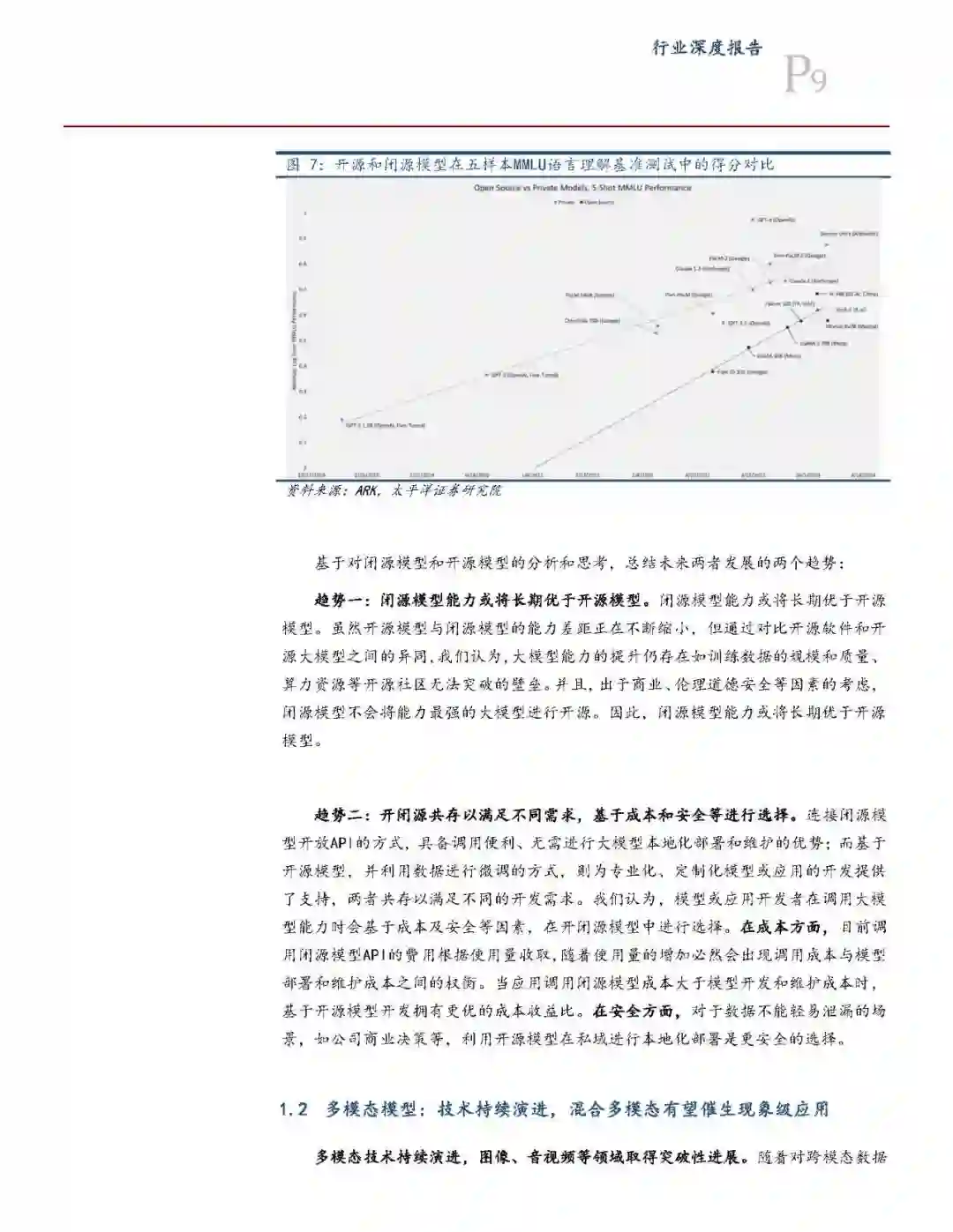 开、闭源模型共存满足不同开发需求,多模态有望催生现象级应用。大语言模型方面,闭源模型是模型基础能力上限持续突破的主阵地,同时通过开放API的方式实现能力延展。此外,开源与闭源模型差距缩小,并通过微调进一步助推应用生态繁荣。多模态方面,在头部AI公司及细分赛道领先者的共同推动下,图像、音视频生成等多模态愈发成熟。此外,集成文本、语音等混合多模态模型推出,变革人机交互方式,有望在强交互性场景中催生现象级应用。