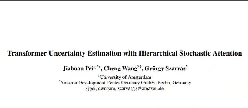 Transformers 在许多NLP任务中都是最先进的,并且也被应用到许多现实世界的产品中。理解变压器模型预测的可靠性和确定性对于构建可靠的机器学习应用(如医疗诊断)至关重要。虽然最近提出了许多Transformer的扩展,但对Transformer模型的不确定性估计的研究还不够深入。在本工作中,我们提出了一种新的方法,使Transformer具有不确定性估计的能力,同时,保持原有的预测性能。这是通过学习一个分层随机的自注意力来实现的,它分别关注值和一组可学习的质心。然后使用Gumbel-Softmax方法,将采样的质心混合形成新的注意力头。从理论上证明了从Gumbel分布中抽样得到的自注意力近似是有上界的。在两个具有域内(ID)和域外(OOD)数据集的文本分类任务上,我们实证地评估了我们的模型。实验结果表明,该方法具有较好的预测性能和不确定性权衡;(2)在ID数据集上表现出非常有竞争力的(在大多数情况下是改进的)预测性能;(3)在OOD数据集的不确定度估计方面与蒙特卡罗dropout和集成方法相当。
