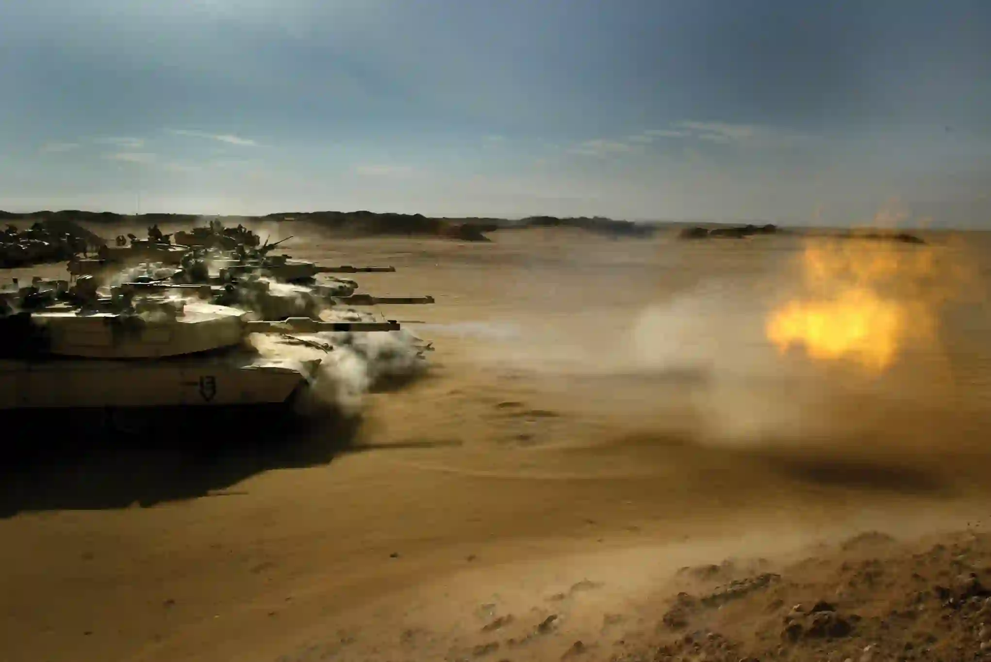 图:2003 年 3 月,伊拉克自由行动开始前,第三步兵师 M1A1 坦克在科威特乌达里靶场综合设施进行射击。(图片由第三步兵师提供)