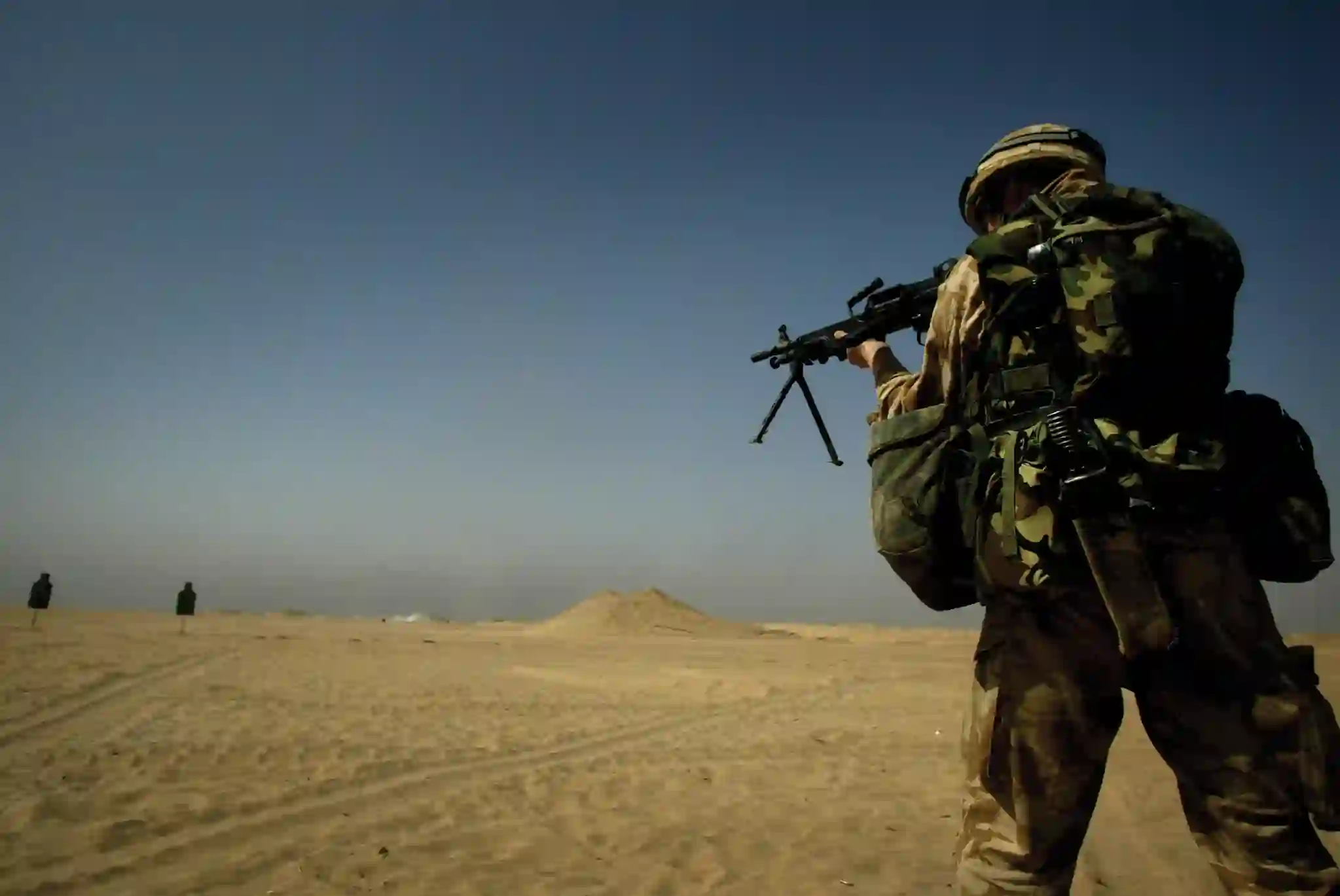 图:2003 年 3 月,伊拉克自由行动开始前,第三步兵师的一名士兵在科威特的乌达里靶场进行训练。(图片由第三步兵师提供)
