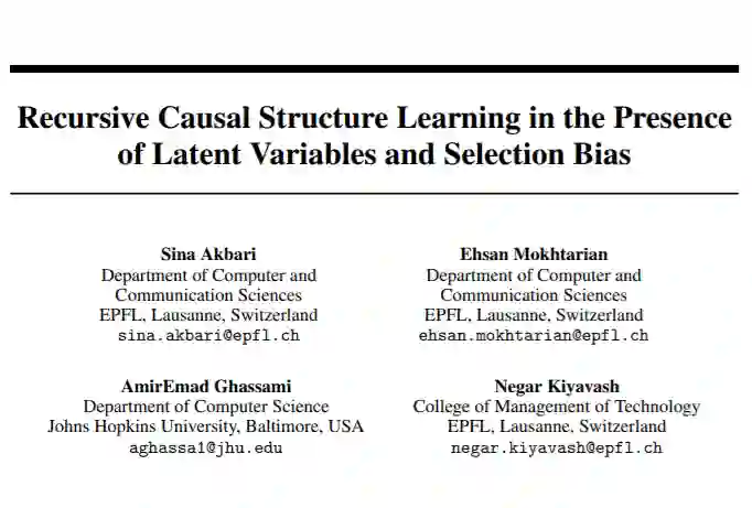 我们考虑了在存在潜在混淆变量和选择偏差的情况下,从观测数据中学习系统的因果MAG(Maximal Ancestral Graph)的问题。基于约束的方法是解决这一问题的主要方法之一,但现有方法在处理大型图时要么计算代价太高,要么缺乏完整性保证。我们提出了一种新的计算有效的递归约束方法,是健全和完整的。我们方法的关键思想是,在每次迭代中标识和删除特定类型的变量。这使我们能够高效地递归地学习结构,因为这种技术既减少了所需的条件独立(CI)测试的数量,又减少了条件集的大小。前者大大降低了计算复杂度,而后者产生了更可靠的CI测试。我们提供了最坏情况下所需CI测试数量的上限。据我们所知,这是文献中最紧的上界。我们进一步提供了任何基于约束的方法所需的CI测试数量的下界。在最坏的情况下,我们所提出的方法的上界和下界最多相差一个等于变量数的因子。我们也通过模拟与真实实验对提出的方法与当前最优算法进行了比较。
