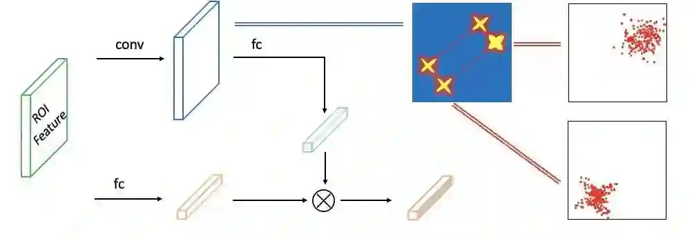 定位分布不确定性 常规的检测框架中,分类和定位分支是独立优化的,输出分类得分不能反映定位质量,该论文提出了一个基于定位分布的不确定性模块,首先将分类的one-hot得分替换为预测框与真实框的IOU分数,并通过两个全连接层作为热力图输出与分类得分间的通道来更好的预测分类得分。卷积定位分支的热力图本质上是一个二维高斯分布,可以代表对于每个点定位的质量,通过搭建定位与得分之间的通路有效消除了两个分支的回归差异。