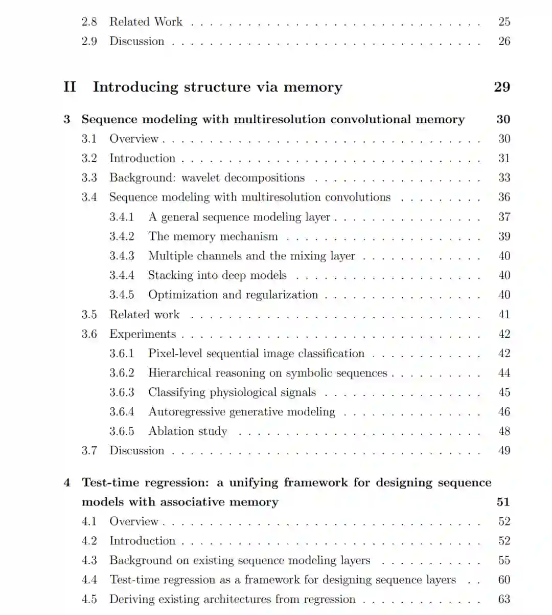 学习——无论对人还是对机器——都是在观测之上搜寻能够解释它们的假说。这个过程受制于我们假设空间中所嵌入的先验、偏置与归纳假设。在本论文中,我们探究如何通过引入恰当的结构来引导机器在序列建模任务中的学习。我们首先考察一个真实世界问题:利用自由生活(free-living)条件下的连续血糖监测(CGM)数据建模血糖控制。通过将机理性生理模型融入学习过程,我们据以约束假设空间,使之反映人体调节血糖的机理,从而得到对血糖调控可解释且具有临床意义的表征。随后,我们转向通用序列建模,研究两种通过记忆引入结构的方法:其一,将多分辨率记忆作为归纳偏置,以捕捉序列数据中常见的层次化模式,并由此构建一类以小波理论为基础、参数高效的神经网络;其二,给出一个用于理解与推导现代神经序列模型(如softmax 注意力与状态空间模型)的统一框架,把它们视为实现联想记忆与检索的隐式算法。总体而言,本文朝着用于序列建模的结构化智能迈出一步,展示了无论源自领域知识还是记忆机制的基于原理的架构设计,都能带来更可解释且更有效的模型。