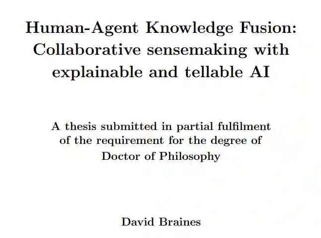 本文引入“人-智能体知识融合”(HAKF)作为一个概念框架,以支持多模态知识的共同构建,并支持人-智能体团队在特定任务和时间受限的问题解决活动中进行协作。具体而言,HAKF 强调了可解释人工智能对于快速建立信任的必要性,以及可讲述人工智能对于流畅知识交换的必要性。论文定义了一个名为“认知速写”(Cogni-sketch)的 HAKF 开源实例化平台,该平台支持以下实验:(1)由人类主导的、针对开源情报分析的信息觅食、意义建构和故事讲述;(2)来自机器智能体和数据源的信息融合,并与人类分析师协同工作。(1)的结果表明,用户成功完成了任务,并同时推进了多项意义建构活动。(2)的结果,重点展示了机器视觉和物体识别的融合,证明了机器智能体共同构建的知识可供人类用户使用。