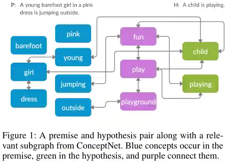 摘要:文本蕴涵是自然语言处理的基本任务。大多数解决这个问题的方法只使用训练数据中的文本内容。一些方法已经表明,来自外部知识来源(如知识图谱)的信息除了文本内容之外,还可以通过提供对任务至关重要的背景知识来增加价值。然而,所提出的模型并没有充分利用通常大而有噪声的公斤中所包含的信息,而且也不清楚如何有效地编码这些信息以使其对加密有用。我们提出了一种方法,通过(1)使用个性化的PageR- ank生成低噪声的上下文子图和(2)使用图卷积网络捕获KG结构对这些子图进行编码,用KGs的信息来补充基于文本的嵌入模型。我们的技术扩展了文本模型挖掘知识结构和语义信息的能力。我们在多个文本蕴涵数据集上评估了我们的方法,并表明使用外部知识有助于提高预测准确性。这一点在极具挑战性的BreakingNLI数据集中表现得尤为明显,我们看到在多个基于文本的entailment模型上有5-20%的绝对改进。