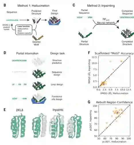 “通过这两种方式,可以在新设计的蛋白质中得到关键特征,这些特征可以是已知的结合基序,甚至是酶活性位点。”研究人员解释。