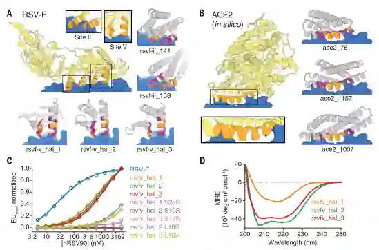 例如对呼吸道合胞病毒(RSV)的验证,研究人员针对其抗原表位用AI设计了37个新兴蛋白质,其中三个以0.9-1.3μM的结合力与RSV的中和抗体结合,为相关疫苗开发提供新的思路。