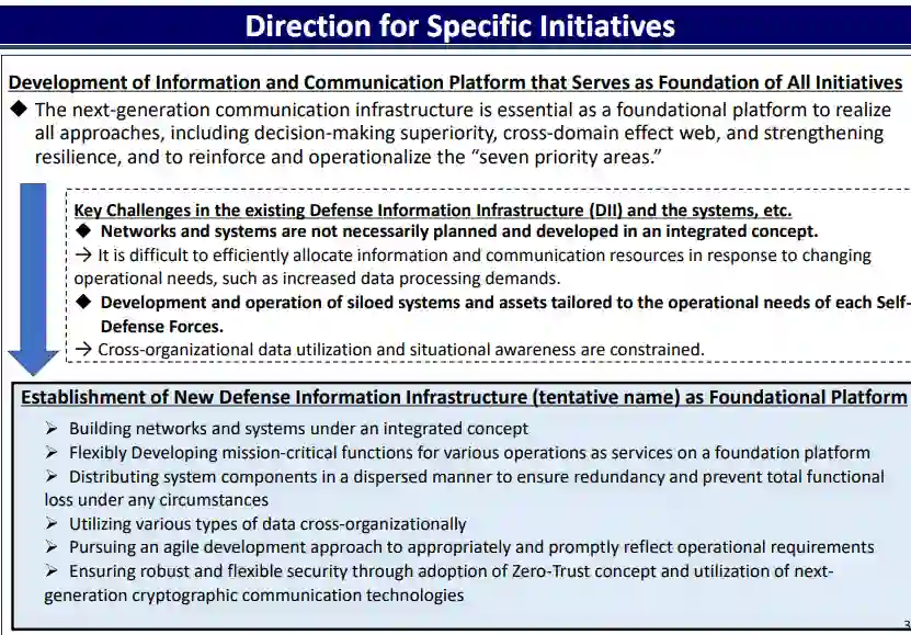 - 从平时到灾害和紧急事态,信息通信基础设施都是国民日常生活和自卫队行动的基础。确保在信息通信技术(ICT)上的技术优势和自主性对于日本的国家安全至关重要。