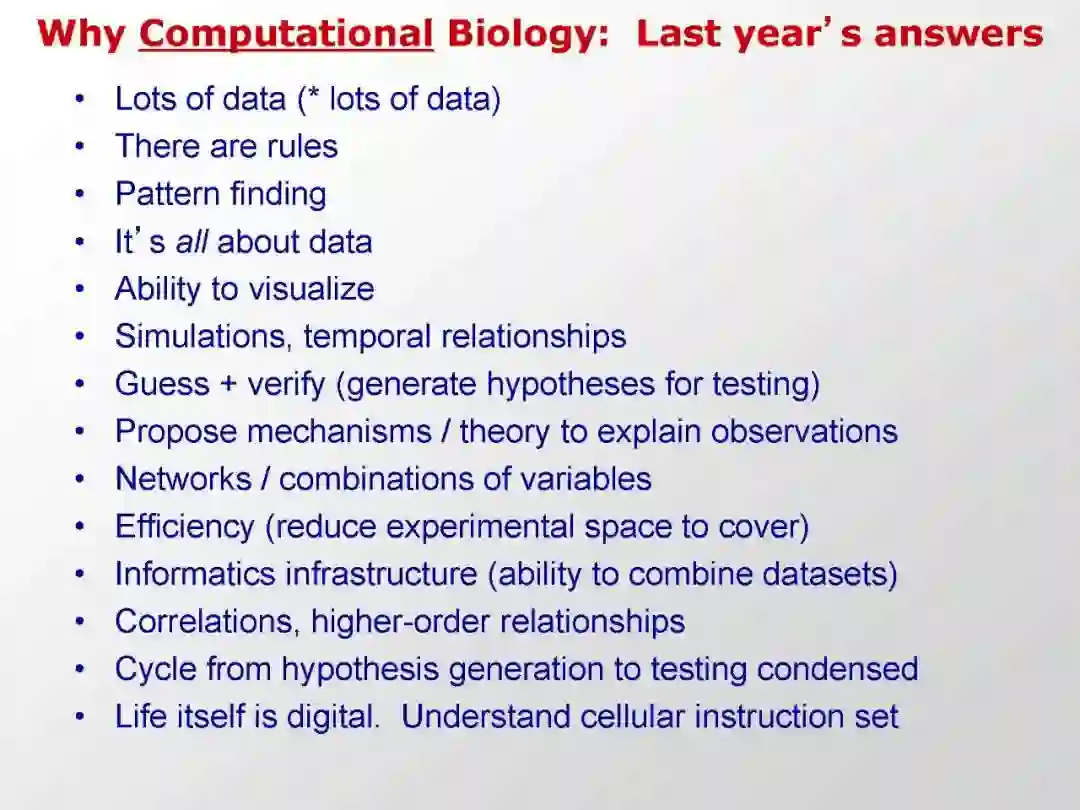 本课程更广泛地介绍了基因组学和生命科学的基础和最先进的机器学习挑战。我们介绍了深度学习和经典机器学习方法来解决关键问题,比较和对比它们的力量和局限性。我们力求使学生能够评估我们在这个快速发展的领域所面临的关键问题的各种各样的解决方案,并执行能够产生巨大影响的新的使能解决方案。作为课程的一部分,学生将实施具有挑战性的问题的解决方案,首先是在一个精心选择的任务集的问题集,然后在一个独立的项目。学生将在Jupyter笔记本中使用Python 3和TensorFlow 2进行编程,这是对仔细记录你的工作的重要性的认可,这样别人就可以精确地复制你的工作。