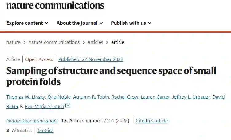 参考资料 Linsky, T.W., Noble, K., Tobin, A.R. et al. Sampling of structure and sequence space of small protein folds. Nat Commun 13, 7151 (2022). https://doi.org/10.1038/s41467-022-34937-8