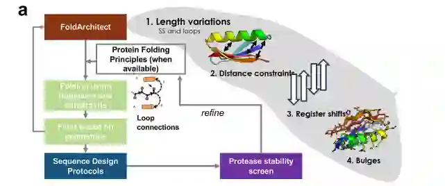 自然序列空间只涵盖了一小部分可能的蛋白质。分子功能的进化通常是通过相对少量已知蛋白质家族的多样化来实现的。这突出了形状多样性增加功能多样性的能力。因此,以高精度采样和控制微小结构变化的能力代表了设计具有新功能的蛋白质的重要进步。到目前为止,已经产生了一些新设计的球状折叠。然而,由于缺乏通用的计算基础设施,给定褶皱内的结构多样性还没有被特意采样和实验验证。最近的进展表明,探索环形螺旋-环形图案能够对现有折叠进行几何采样;在这里,作者团队超越并描述了如何在大范围内耗尽小蛋白质折叠的可塑性,对每个二级结构和环连接器进行采样,以在给定折叠内产生形状多样性。