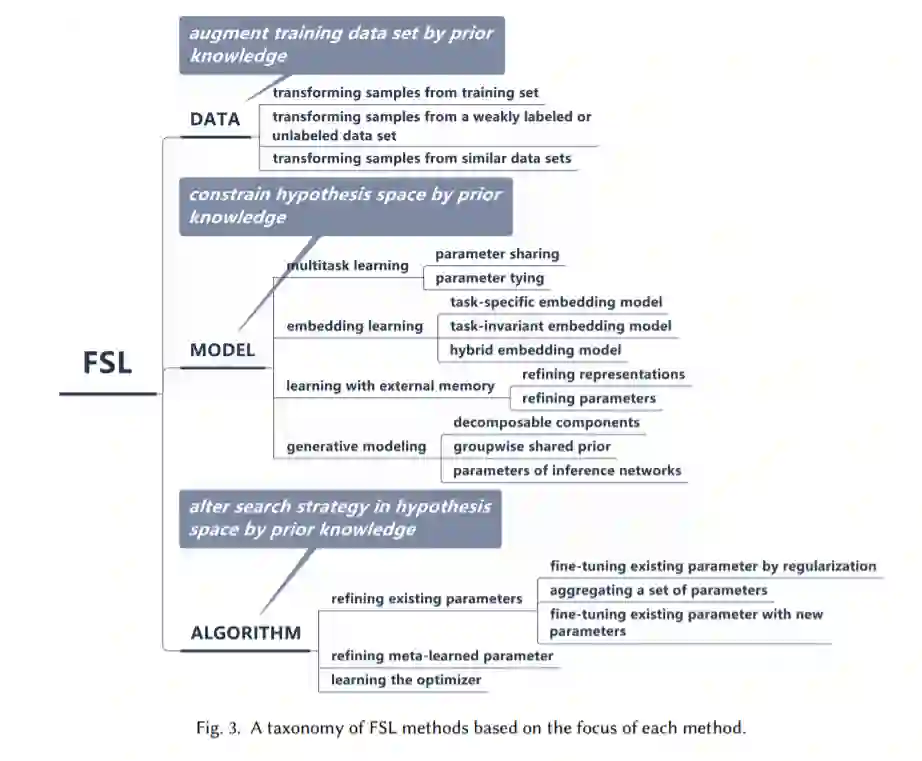 我们对从FSL诞生到最近发表的文献进行了广泛的回顾,并将它们进行了统一的分类。对不同类别的优缺点进行了深入的讨论。我们还对每个类别下的见解进行了总结。这对于初学者和有经验的研究人员都是一个很好的指导方针。