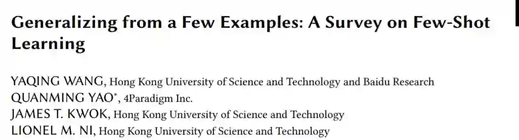 【导读】现有的机器学习方法在很多场景下需要依赖大量的训练样本。但机器学习方法是否可以模仿人类,基于先验知识等,只基于少量的样本就可以进行学习。本文介绍34页小样本学习综述《Generalizing from a Few Examples: A Survey on Few-Shot Learning》,包含166篇参考文献,来自第四范式和香港科技大学习的研究学者。